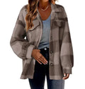 Plush Plaid Women's Autumn And Winter Open Button Lapel Thermal Plaid Pattern Jacket